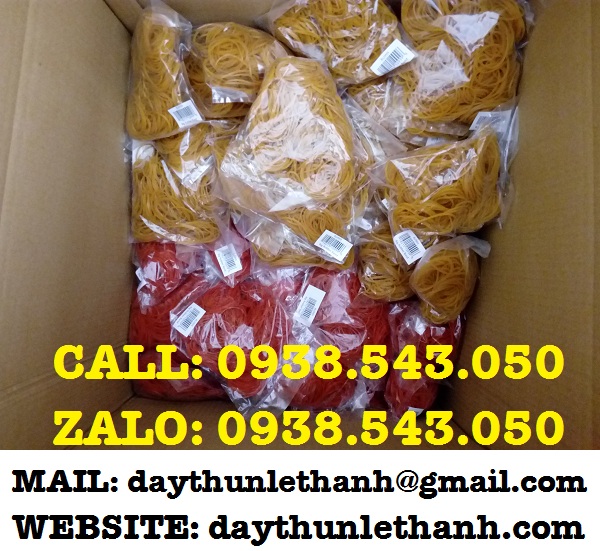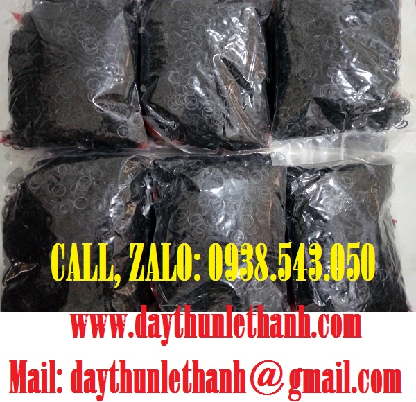 Dây thun khoanh xuất khẩu: dây thun khoanh Lê Thanh có nhiều màu sắc khác nhau: xanh, đỏ, vàng, đen, trắng cùng kích thước lớn nhỏ để phù hợp với từng công việc, đáp ứng nhu cầu của mọi người.