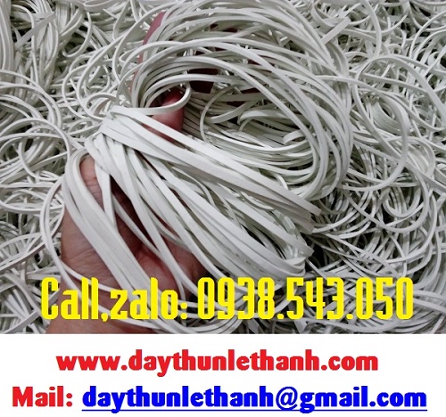 Dây thun màu trắng sữa có 2 kích cỡ đó là bản to và bản nhỏ với những kích thước khác nhau. Loại dây thun này được ứng dụng nhiều trong công nghiệp cụ thể là cột các thiết bị linh kiện điện tử.